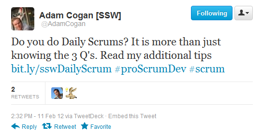 提前保证团队成员的任务状态被更新,这样会议会更有效率。 SSW 规则 Do you update your tasks before the daily stand-up meeting?